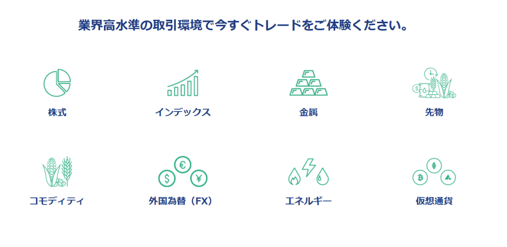 取引できる商品が多く仮想通貨や株式指数、エネルギーやコモディティなどさまざまな商品を取引できます。