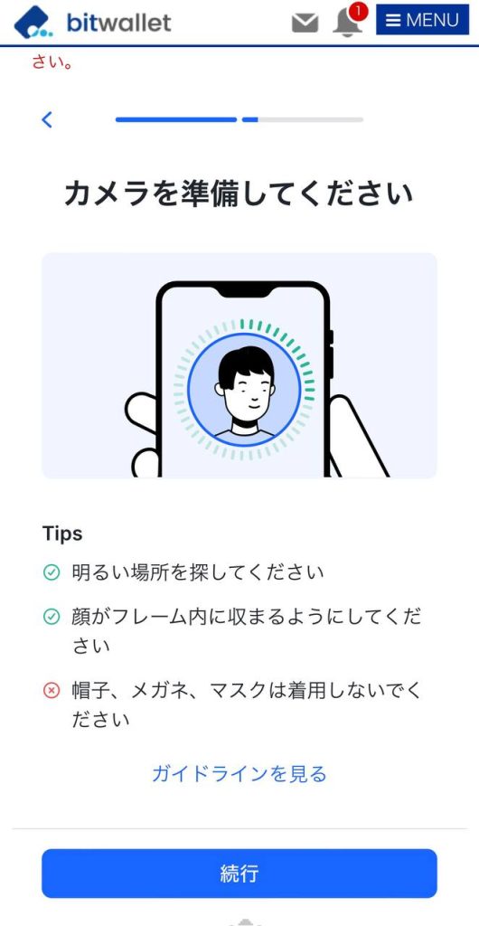 - 画面に表示される指示に従い、カメラによる本人確認